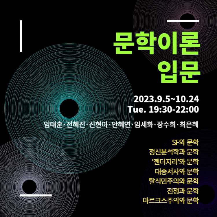 소개 | 문학, 어떻게 읽어야 할까? 내가 읽는 이 작품은 어떤 의미를 품고 있을까? 이 강의는 다양한 관점에서 문학작품을 분석하고 읽어내는 방식을 살펴보는 것을 목적으로 한다. 각 분야의 전공자들과 함께 여러 이론과 주제를 바탕으로 문학 분석의 방식을 알아보는 시간을 가져본다. |